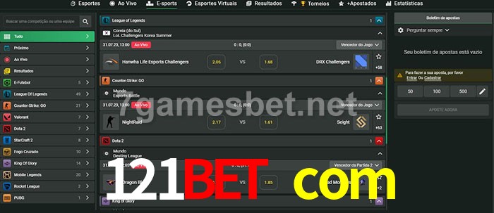 O 121bet com oferece uma grande seleção de opções de apostas em e-sports com probabilidades competitivas